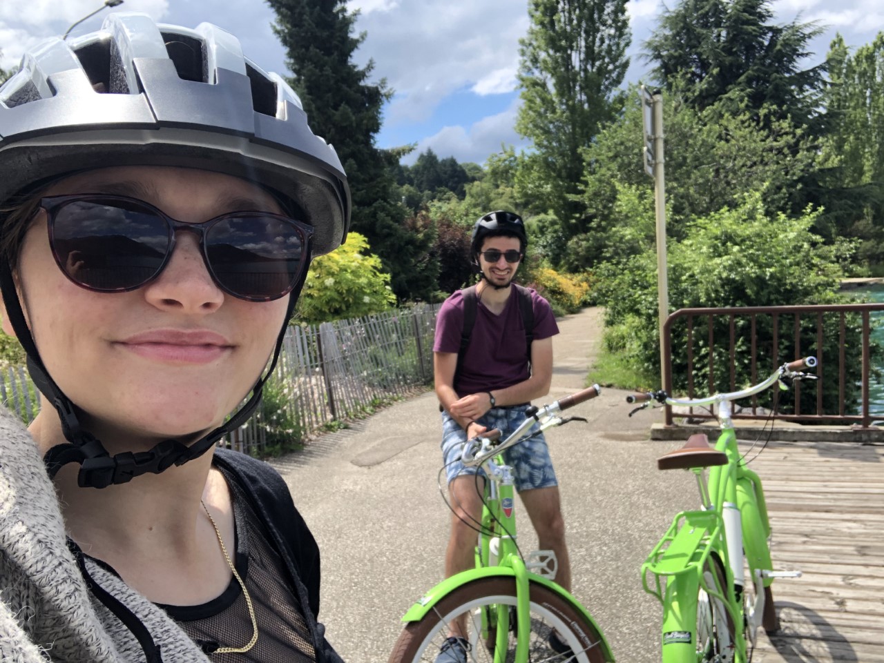 Un gars très serviable nous a fourni deux vélos électriques pendant une demi-journée et nous avons parcouru la voie verte très bien créée et préparée autour du lac d'Annecy.